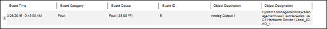 5. The report executes in the Secondary pane and the information related to the event time, category, cause, ID,