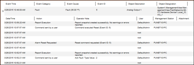 7. Information related to the event treatment such as Time, Action, User Name, Management Station, Attachment,