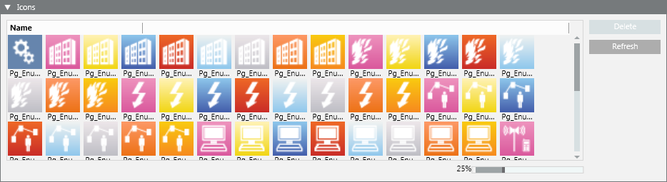 Delete | Delete the icons selected in the list. This button becomes available when at least one icon is selected. |