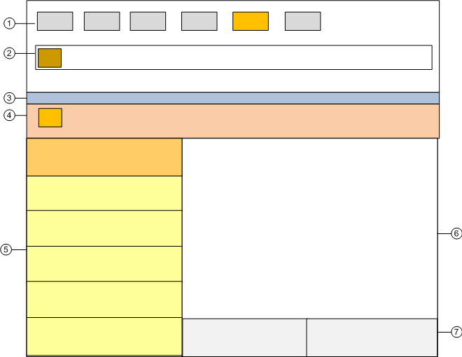 Contains the event button, event details and event-handling commands for the event currently being processed. For more details, see the reference section. The background color reflects the event category color, but in a darker shade. The icon in the event button indicates that the event is being processed by assisted treatment.