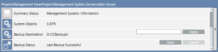 In Progress;Componentfor the component currently backed up;Progressdisplays the backup completion percentage. When the backup is completed, the status changes toLast Backup Successfuland indicates the backup date. The project is available on the server at the given destination path. - After successfully backing up the project data, copy the project file to an external storage medium, such as a server or a DVD. It is recommended to always retain the last three backups.