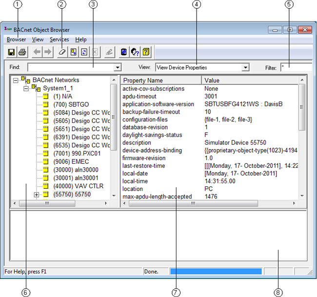 4 | View When browsing an item that is in a list format, for example a Recipient List, the BACnet Object Browser indicates how many items are in that list. Double-click the item to expand and view the list. |