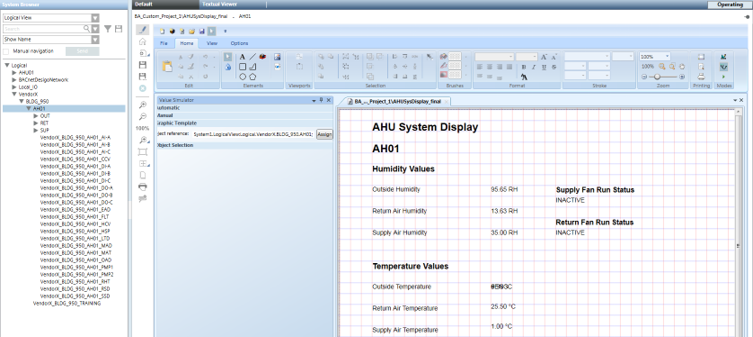 You can test a graphic template by dragging a data point instance from System Browser, into the Value Simulator view.