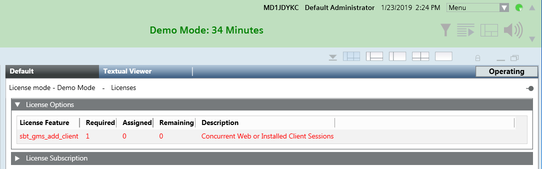 - Demo Mode (Desigo CC can operate for 30 minutes only), if no valid license is found.