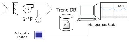 | Trend data are uploaded continuously to the management station and are not saved in the automation station. |