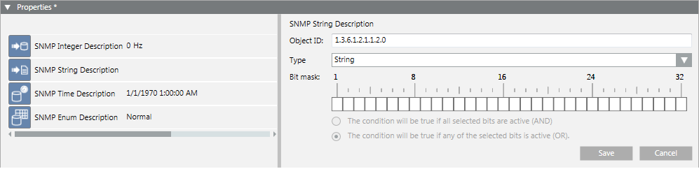 Optional setting that allows verifying some specific bits and activating the event if the defined bitmask matches with the mask received for the SNMP point value.