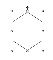 All elements have the green rotational handle attached to a center selection handle. The rotational handle is displayed at the top of the polygon element below.