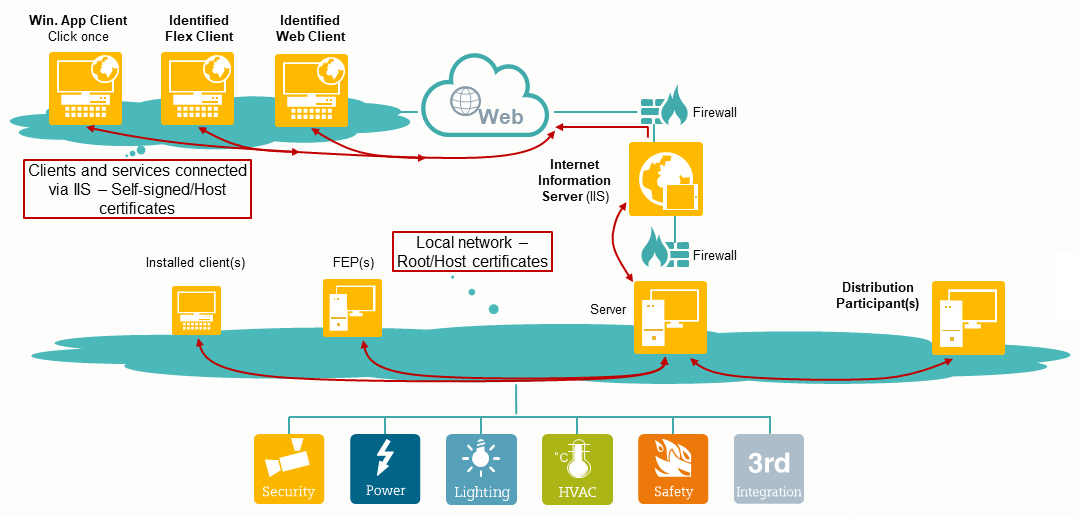 Certificates are used to authenticate entities (person, organization, website or a software application) and establish secure communication between server and clients when deploying Desigo CC system.