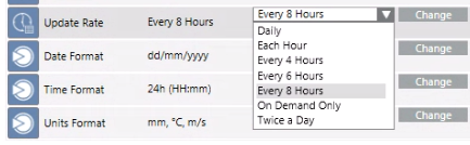 - To have an update of the weather forecast predictions twice a day (00:00 and 12:00), select Twice a Day.