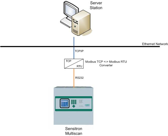 Sensitron Multiscan control panels can communicate with Desigo CC using the Modbus TCP protocol. The integration requires a Modbus RTU<->Modbus TCP communication\converter between the Desigo CC station and the control panel, since both Multiscan panels natively implement the Modbus RTU protocol.