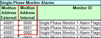 For example, if you want to configure alarms for 3 EMMMs (Single-Phase Monitor 1, Single-Phase Monitor 2, and Single-Phase Monitor 3), then you will have to mention the internal address of the EMMM from the device manual (0, 1, 2) as the offset values for the value.info.meter_alarm_flags_read and command.meter_alarm_flags_write alarm properties.