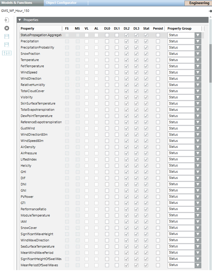 The Operation tab might appear empty if a daily hour is selected and precedes the last modification to weather forecasts (For example, the Operation tab will display empty for an hour previous to the creation date of a location. For the same hour -9999 will display for all the properties in the Extended Operation tab).