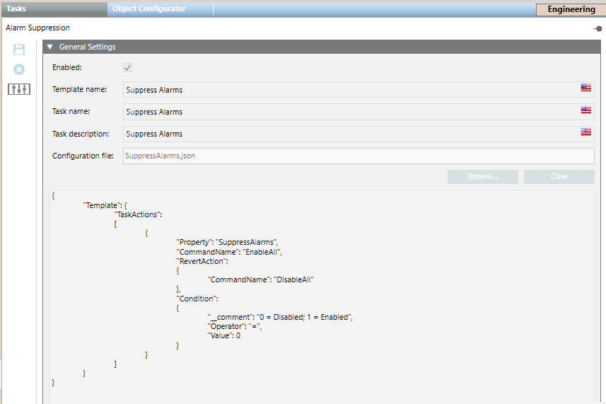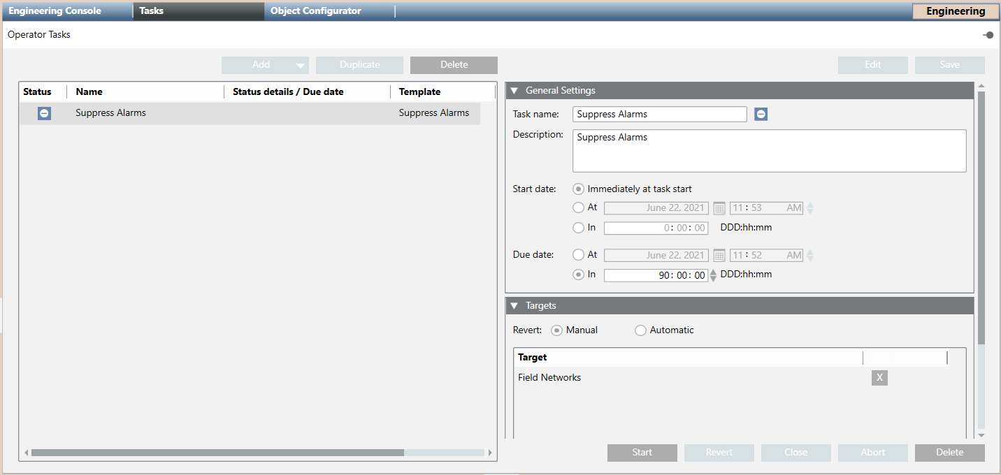 In Engineering mode, you can create new tasks templates that will be used by operators to create new tasks in Operating mode.