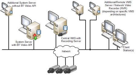 NOTE: It is possible to use VMS solutions from different providers, including Milestone and Siveillance (contact your nearest sales representative). - Video extension: Installs a component (BT Video API) on the Desigo CC server which acts as an interface to the VMS.