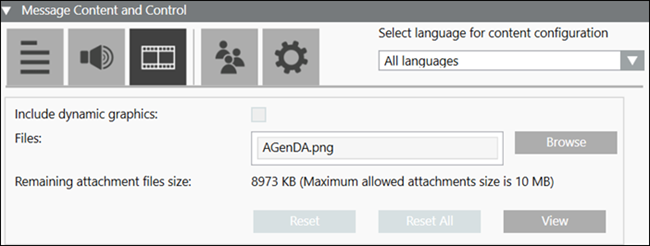 • Select Language for Content Configuration: Allows the user to select the language-specific content entered at the time of message configuration.