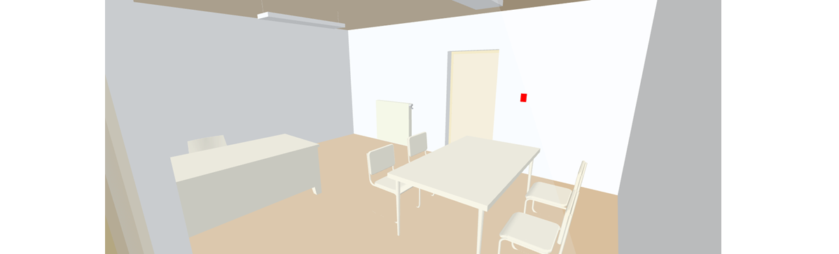 | Displays the room information for temperature and occupancy state. The selected room value display is displayed in the center of the room in red. |