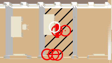 | Displays two different camera positions. The camera position changes automatically when entering a room. |