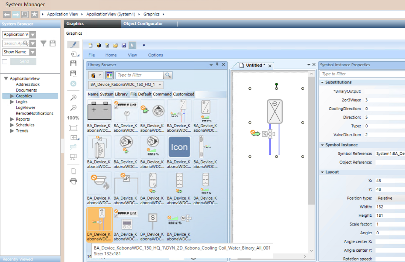 NOTE: Many of the symbols have parameter properties that you can set to adjust the graphic as necessary to represent your system.