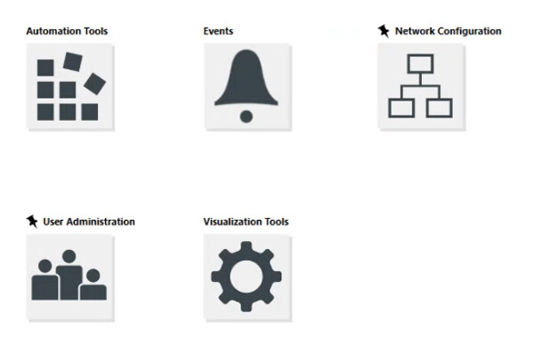 Workflow icons are organized into category folders and some of these folders are marked with pin icon
