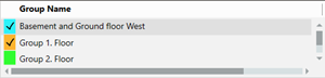 . When shown, the floor list highlights groups in color that extend beyond one floor.
