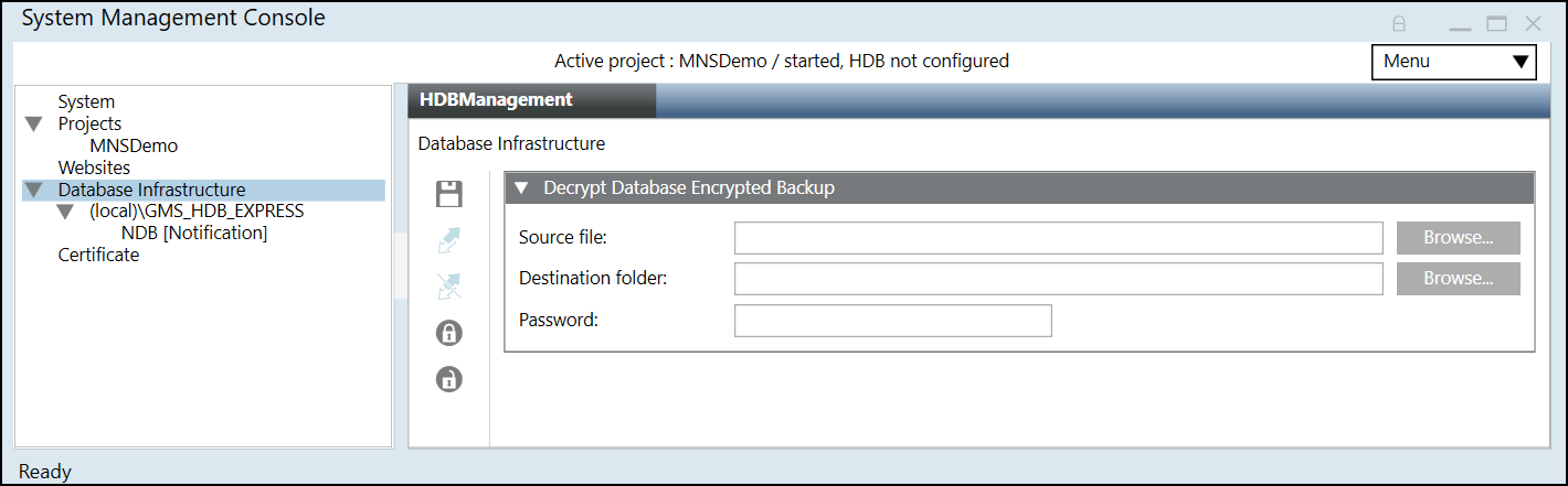 - The selected compressed, encrypted notification database backup is decrypted and is stored at the specified destination folder.