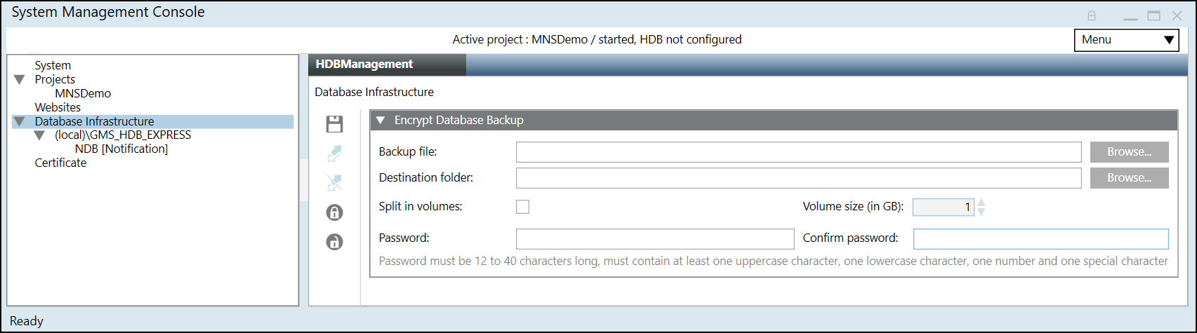- You have sufficient disk space on the drive before you start notification database backup encryption.