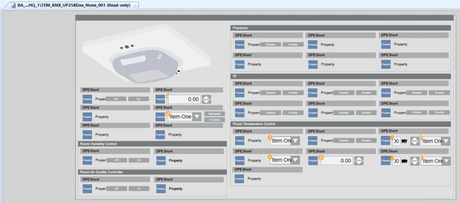 In Engineering mode, this is the graphic template for the UP 258E22 and UP 258D12 presence detectors.