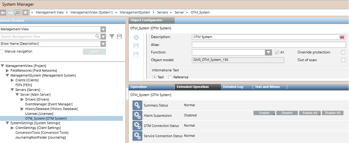 In Management System > Servers > Main Server > OTM System, in Extended Operation: