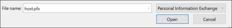 The File to Import dialog box displays. - Click Browse, and select a host certificate (file type pfx).