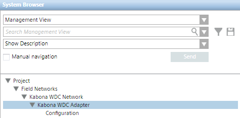 - Select Project > Field Networks > [SORIS network] > [Kabona WDC Adapter].