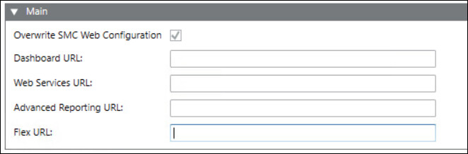 - Overwrite SMC Web Configuration: Allows you to overwrite the URL configurations applied from the SMC. Select the check box to change the below URLs.