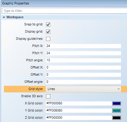 b. You can customize the color (X, Y, and Z Grid Color properties) and size (Offset X,Y, and Z properties).