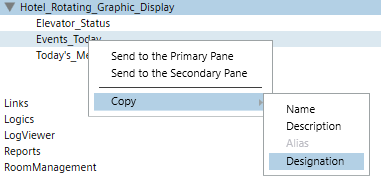 - In System Browser navigate to and then right-click on the graphic you want to display, and from the context menu select Copy > Designation.