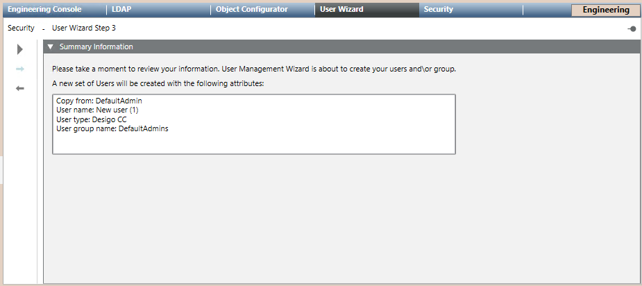 1. You are in the User Management Wizard step 3 – Summary Information.