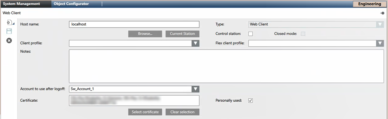 Specify Host Name and Host Certificate on Identified Flex Station Object