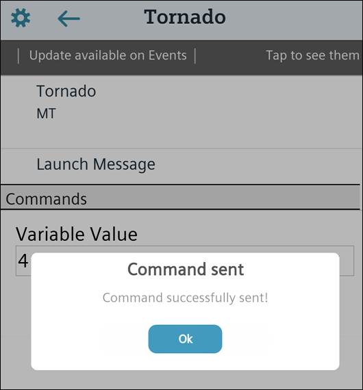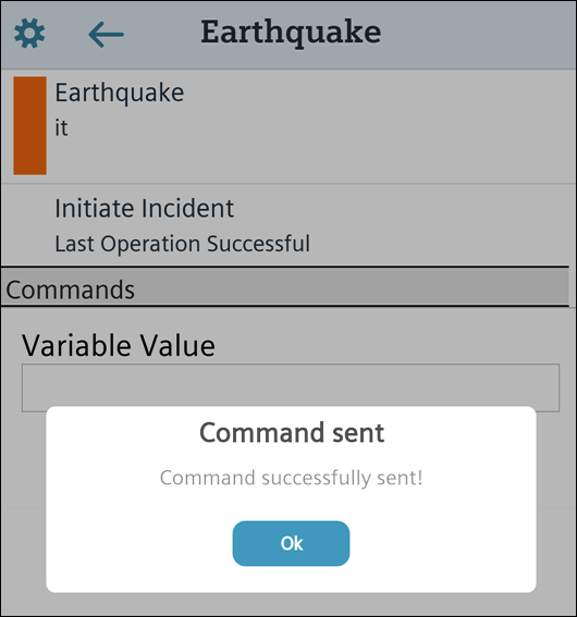 - The selected incident is initiated. All commands in Notification are visible in Mobile App.