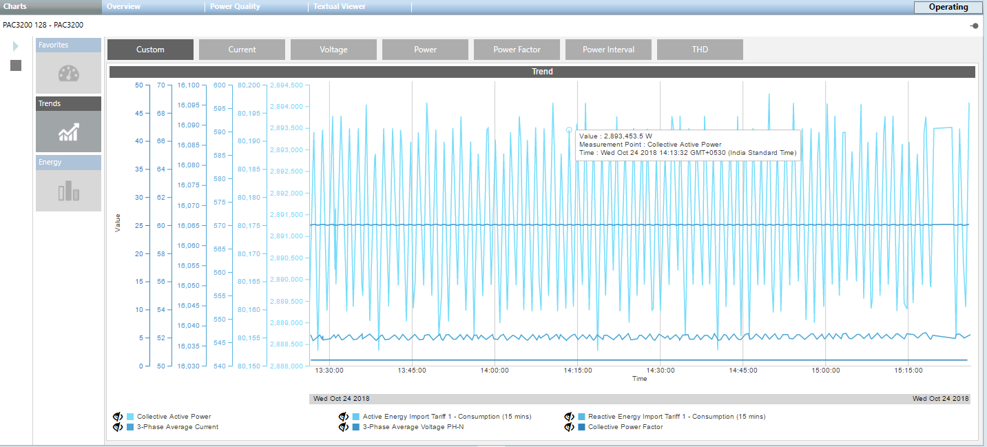 You can view the trend information for any of the following parameters: - Custom: You can view the live trends of the measurement points that are already configured.
