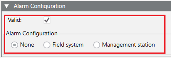 "AlarmsConfiguration": { "Type": "NONE" }