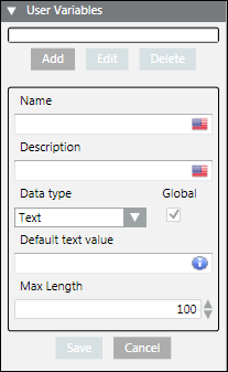NOTE: If the check box is not selected, it means the user variable is private to the current message template. A user variable can also be made global at a later point in time. - Click Save.