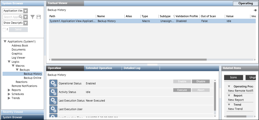 2. Select Applications > Logics > Macros > Backups > Backup History.