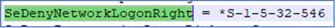 4. Open initial.cfg in an editor such as Notepad and locate SeDenyNetworkLogonRight.