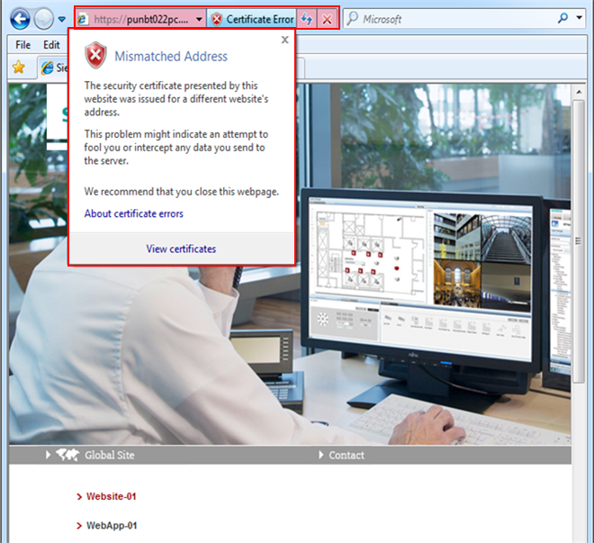 - After you launch the website URL if you continue to get the Certificate Error as follows.