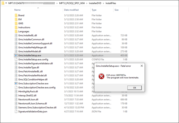 When you run Gms.InstallerSetup.exe from installation media, installation is terminated with fatal error.