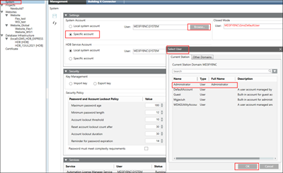 - Select any account having administrator privileges from either Current Station or Other Domains.