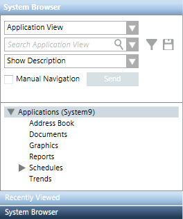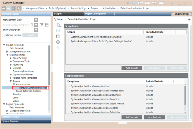 - Only the system objects that are configured in the scope definitions (not excluded) are available to the logged-in user in System Browser.