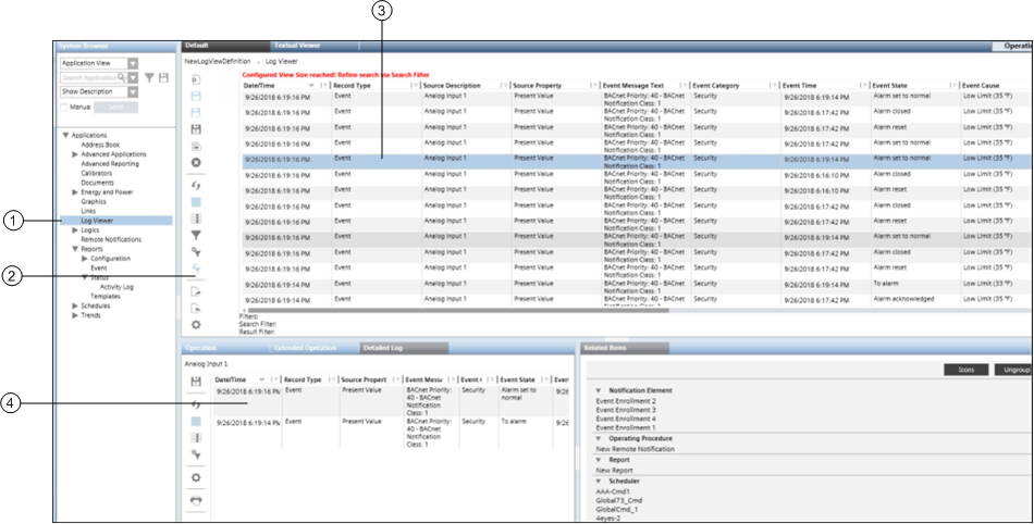 The Log Viewer workspace provides information on the user interface elements of the Log Viewer application.
