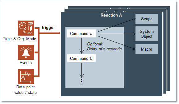 This section provides reference and background information for configuring reactions in Desigo CC. For related procedures, see the step-by-step section.