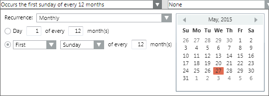 ‒ Selection the options First, Sunday every 12 months.