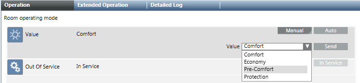 Auto successfulis displayed. - The room operates in automatic mode if not an other manual operating state is active.