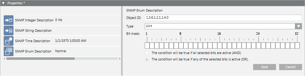 Optional setting that allows verifying some specific bits and activating the event if the defined bitmask matches with the mask received for the SNMP point value.